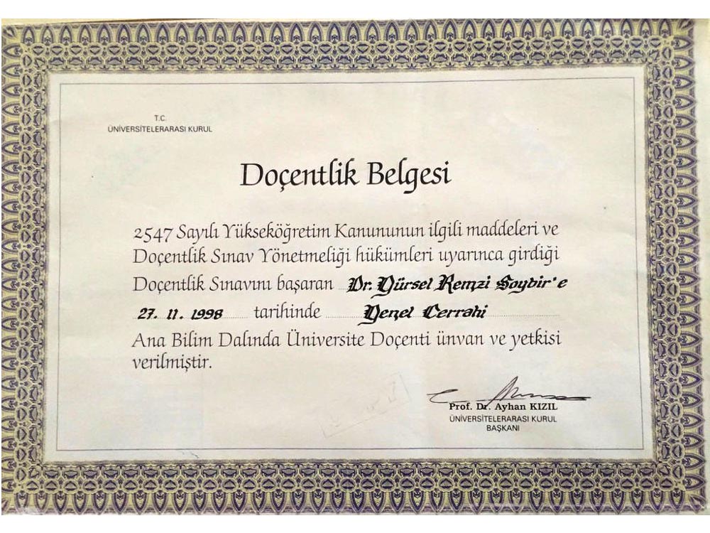 - 1996, Ulusal Cerrahi Kongresi’nde en iyi poster ödülü.